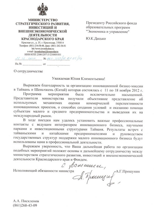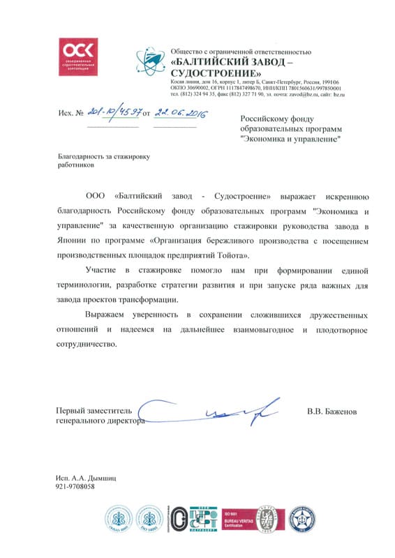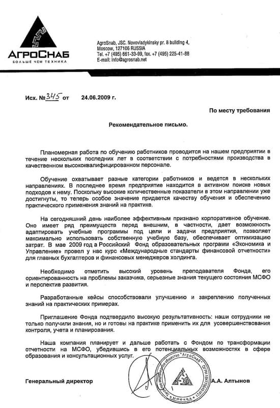 Благодарственные письма