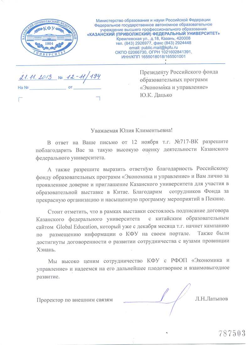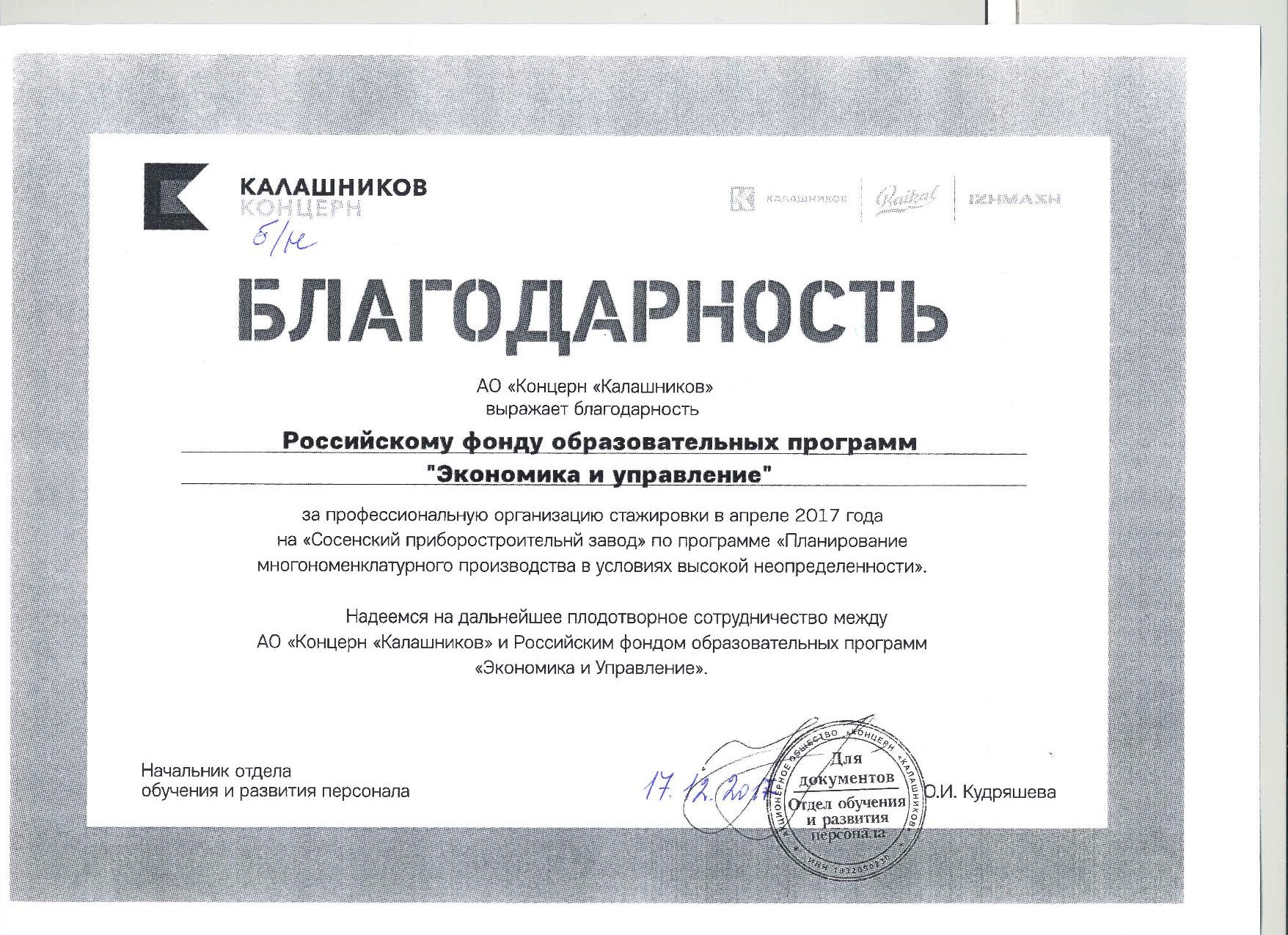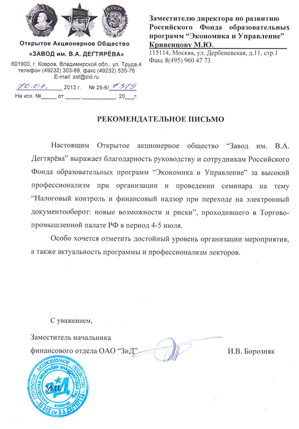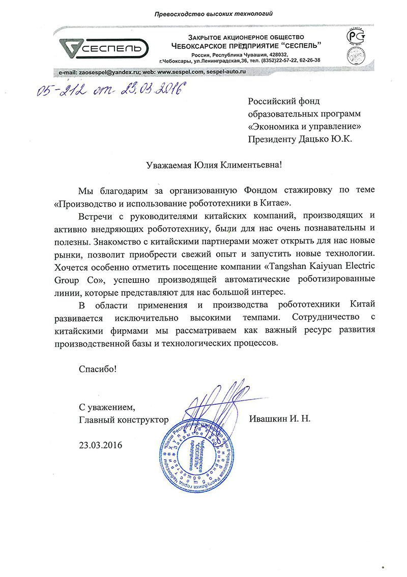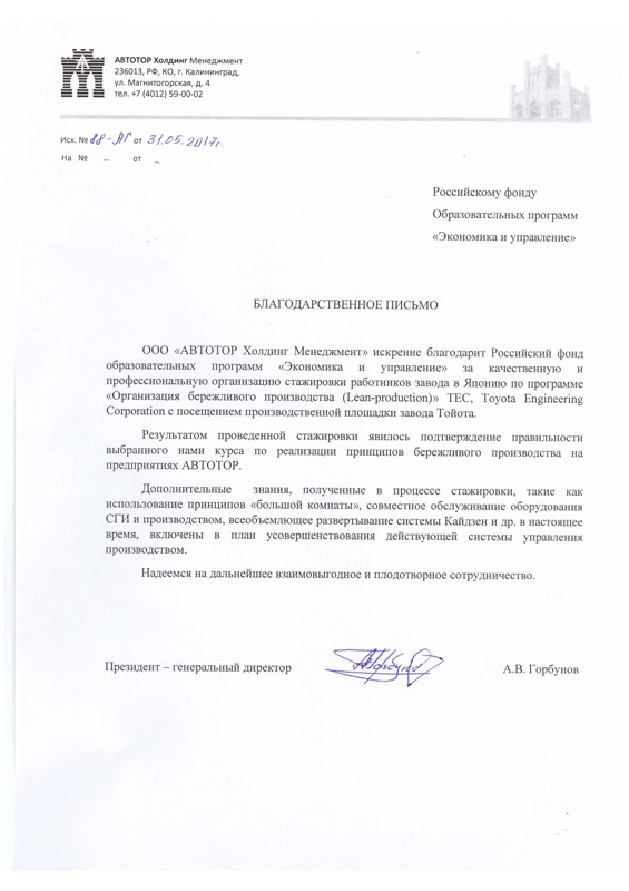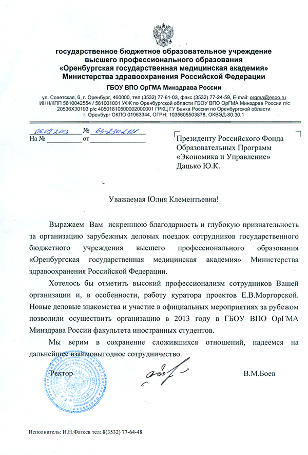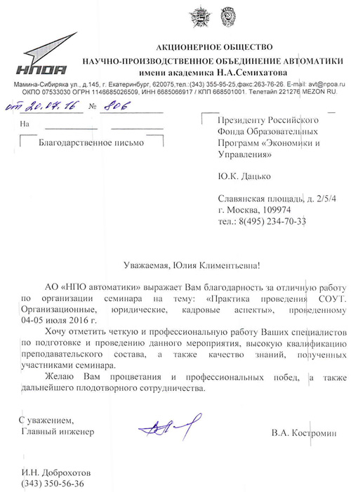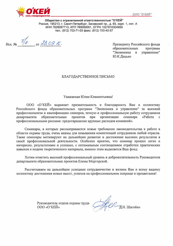 Благодарственные письма
