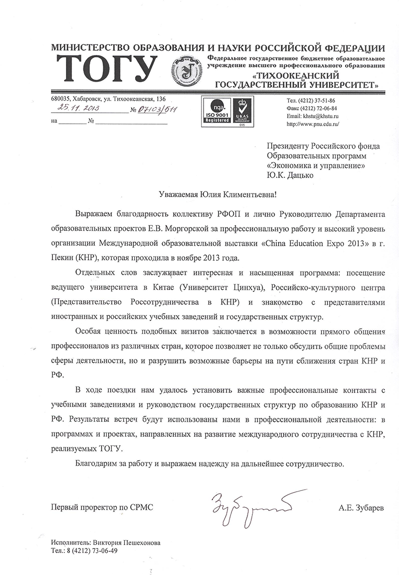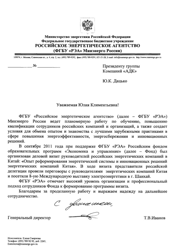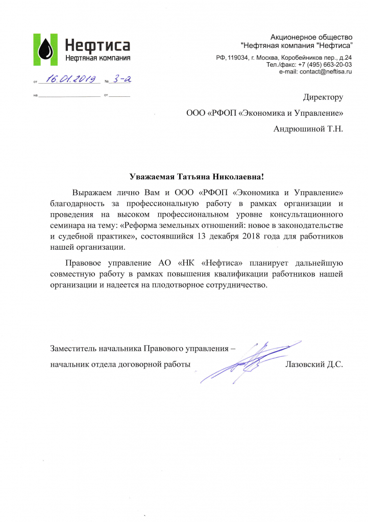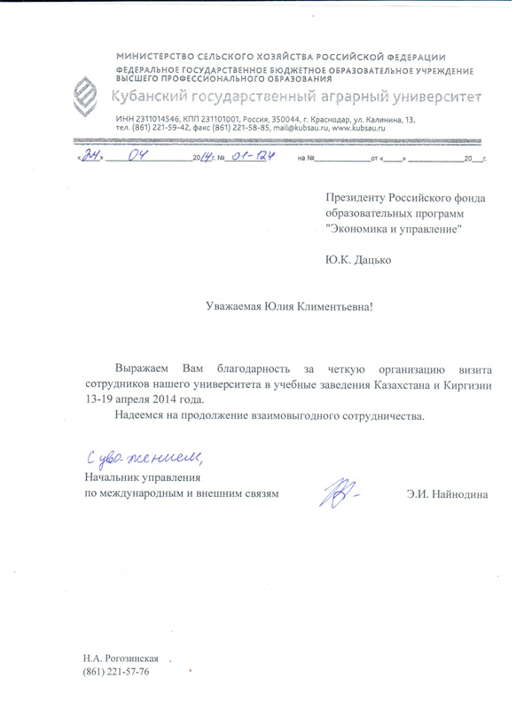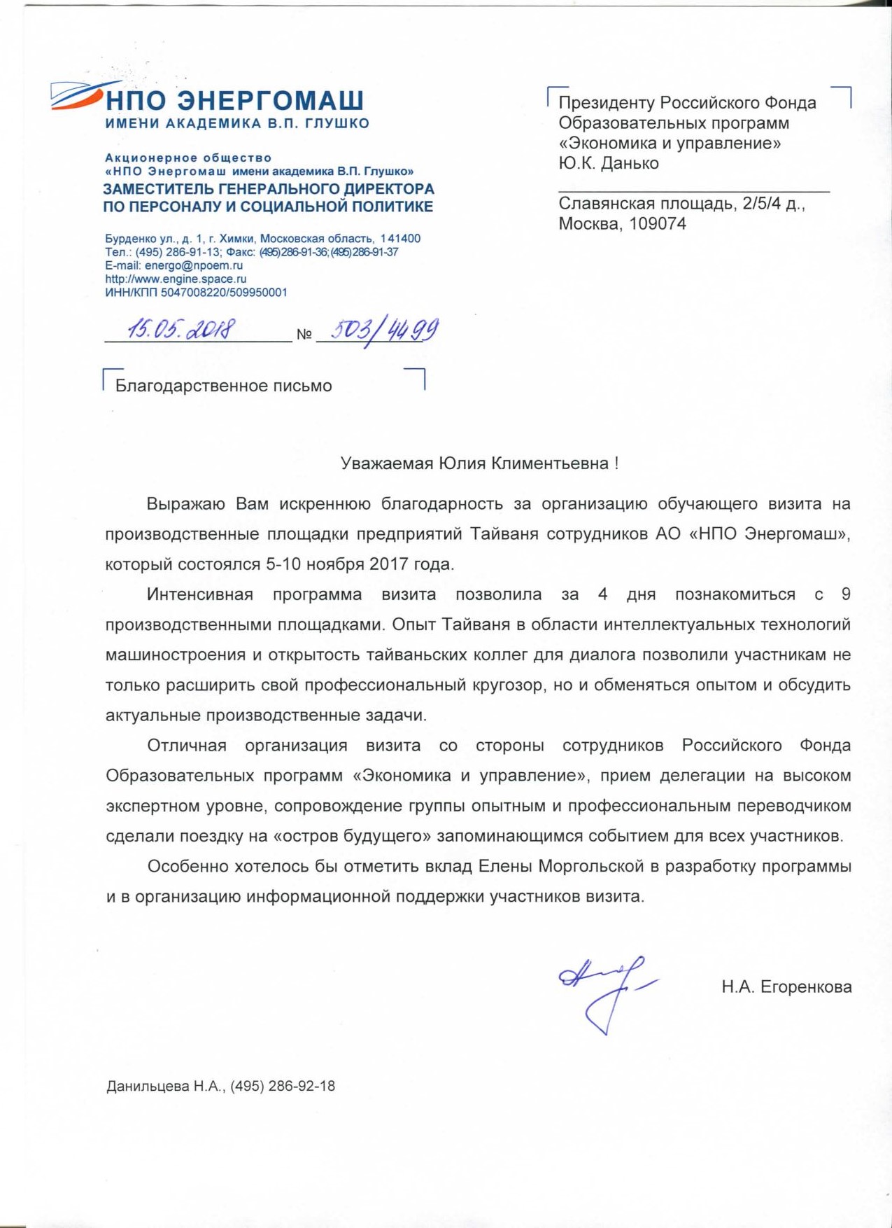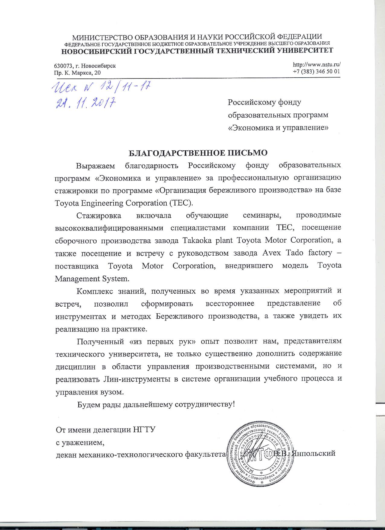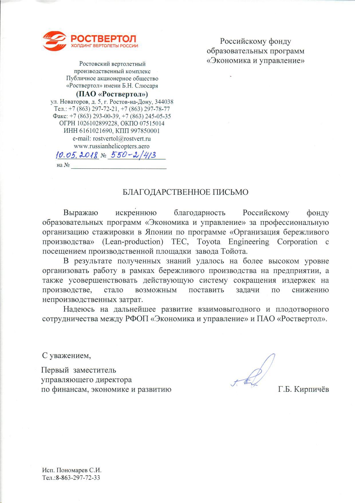 Благодарственные письма