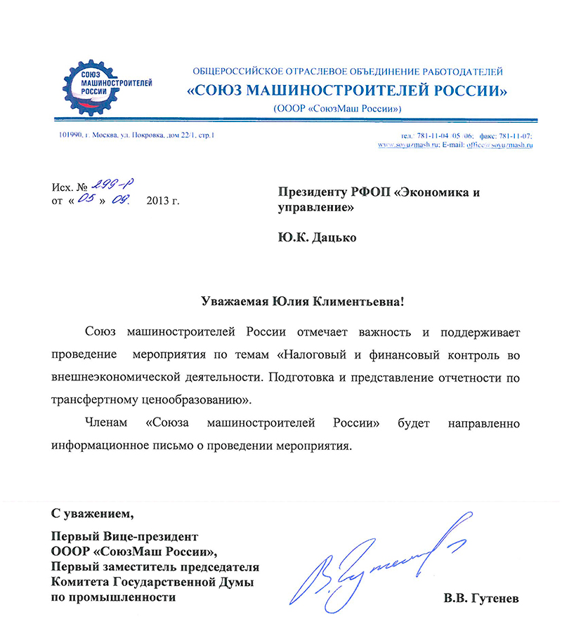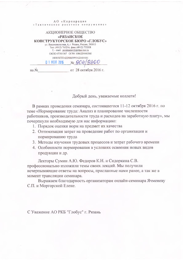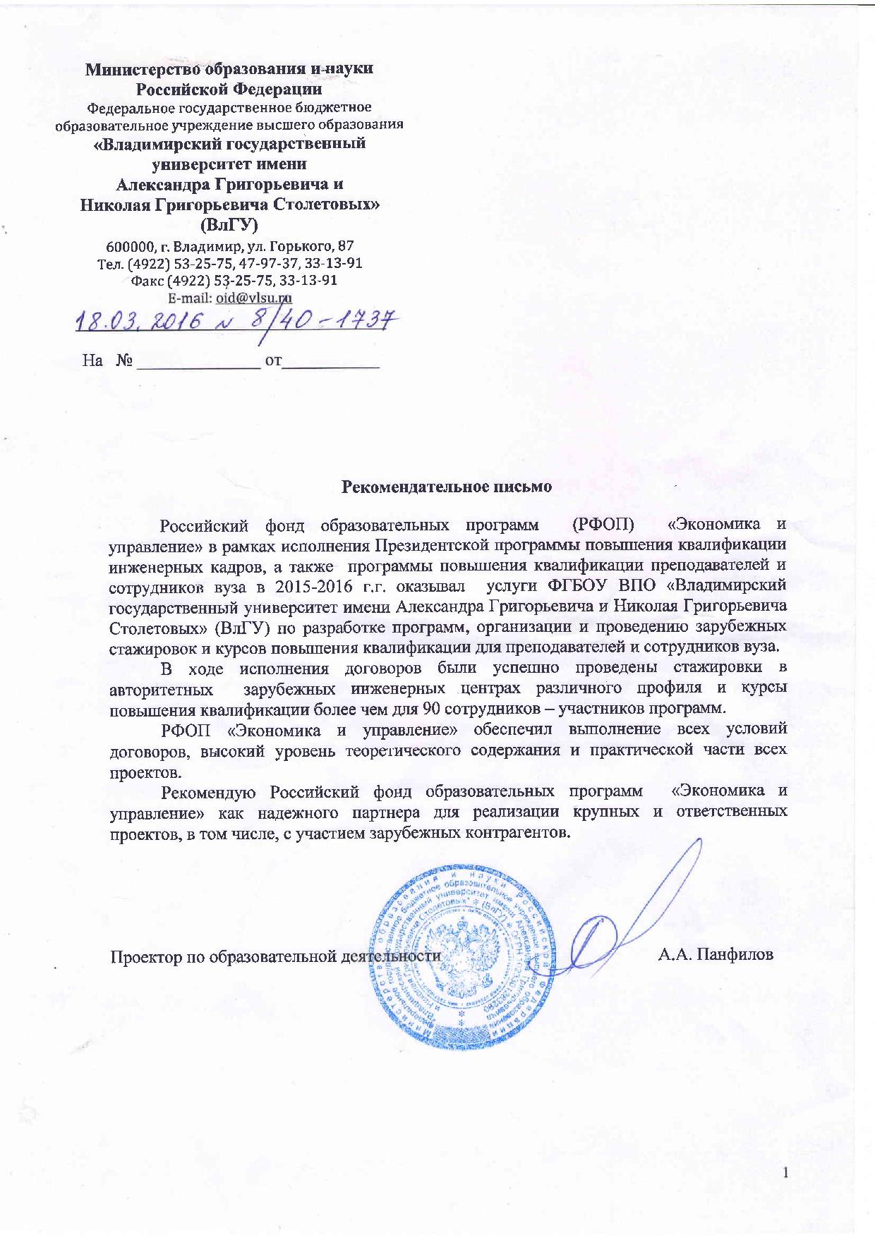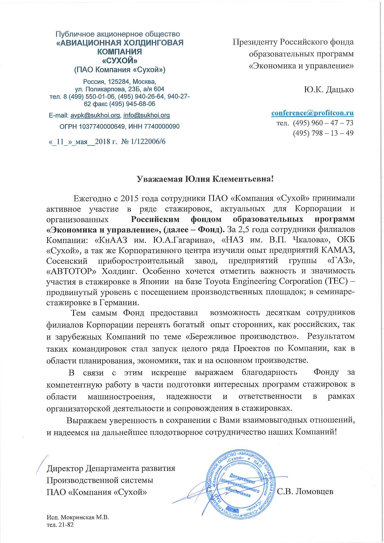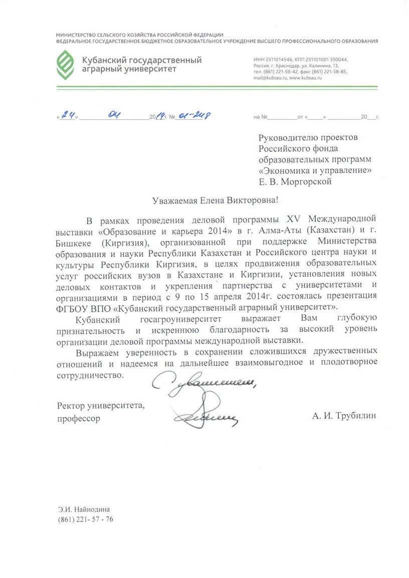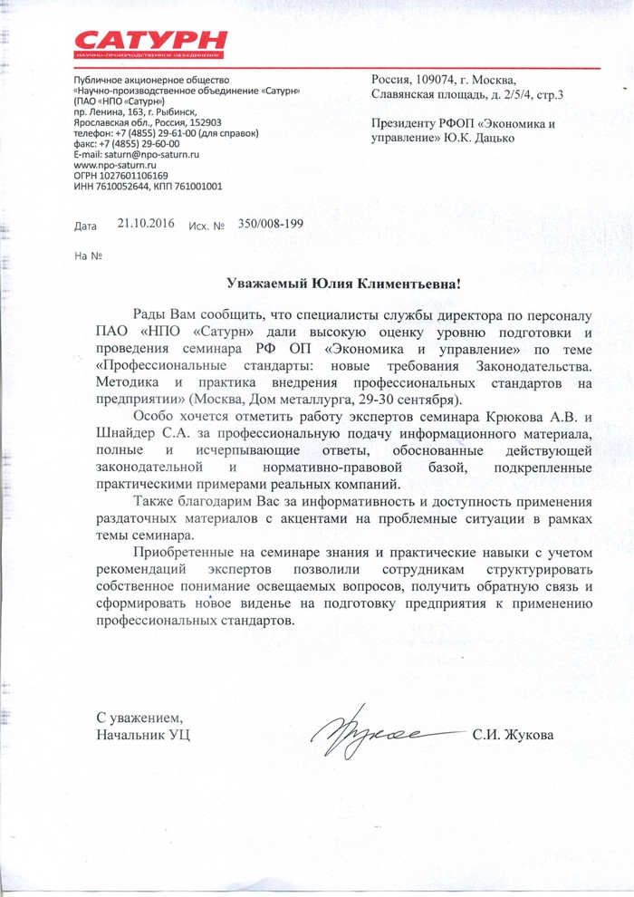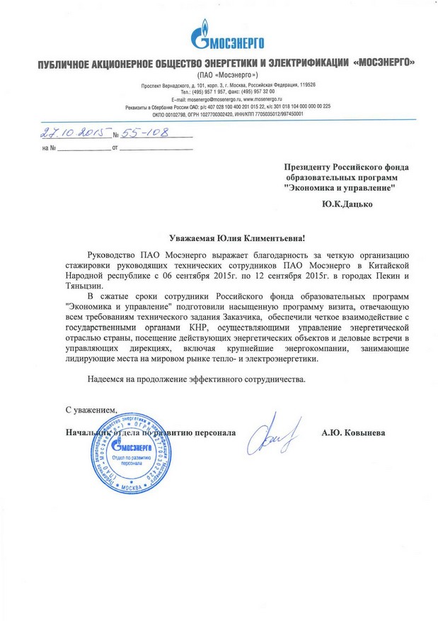 Благодарственные письма